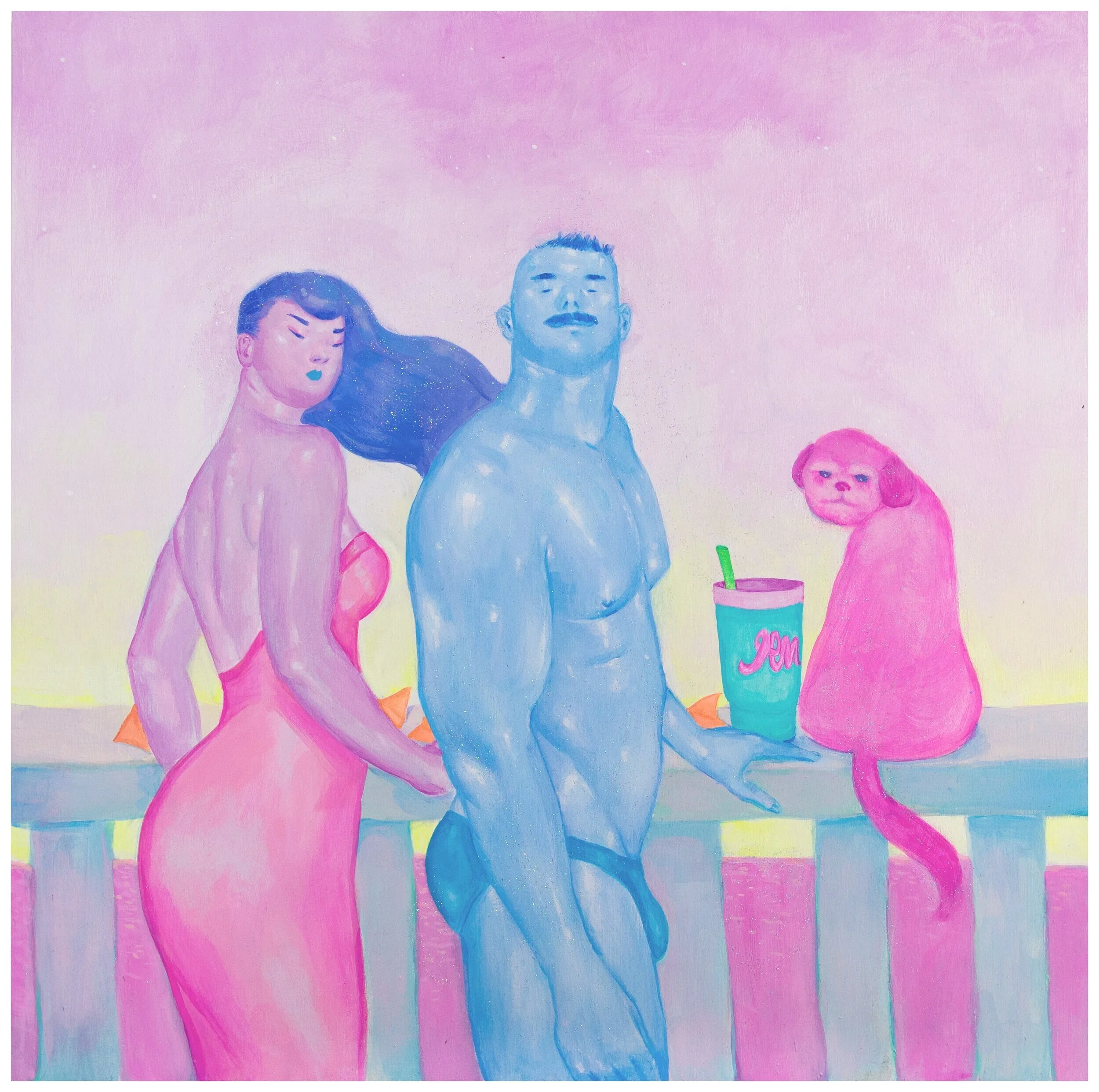 Justin Yoon, Casual Emptiness, 2019, Acrylic, Acrylic Gouache, and Glitter on Wood Panel, 24 x 24 in.